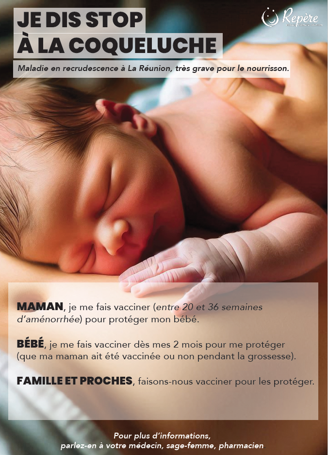 Ces dernières semaines une recrudescence de la coqueluche est identifiée à La Réunion. La coqueluche peut être très grave, voire mortelle, chez les nourrissons qui ne sont pas encore protégés par le vaccin.