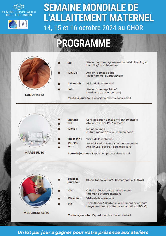 Semaine mondiale de l’allaitement maternel au CHOR Numéro à appeler pour les inscriptions : 0262 74 20 85