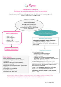 Chikungunya et grossesse Protocole régional Chikungunya et grossesse Synthèse en cas de suspicion/diagnostic de Chikungunya chez la femme enceinte Brochure conseils femmes enceintes “Chikungunya et grossesse” Affiche “Chikungunya et grossesse” Vigilance Chikungunya femme enceinte et nouveau-né Vous protéger, c’est protéger votre bébé
