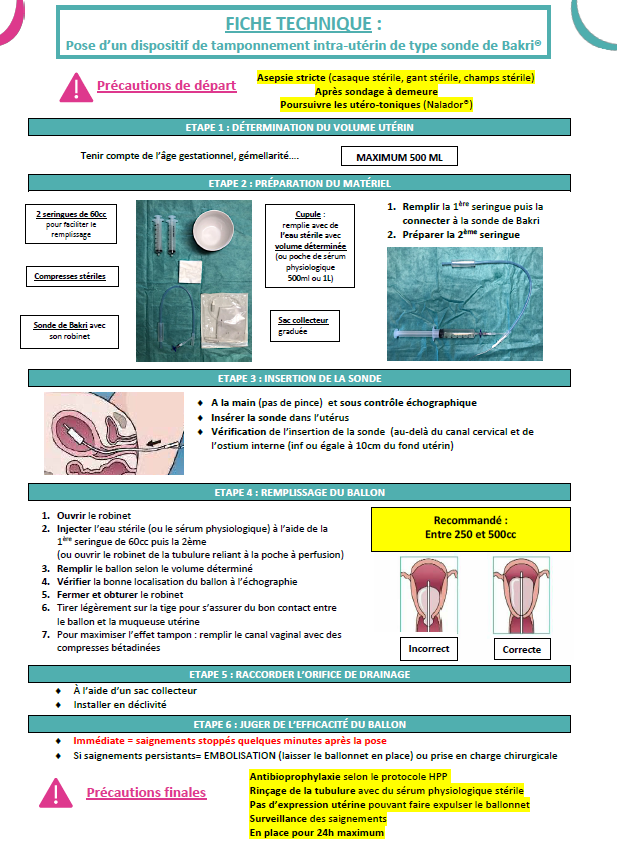 Hémorragie du Post Partum Protocole régional HPP Verso protocole régional HPP Facteurs de risque : fiche prévention Chariot type d’urgence Procédure : pose d’un dispositif de tamponnement intra-utérin de type sonde de Bakri® Fiche technique : pose d’un dispositif de tamponnement intra-utérin de type sonde de Bakri®
