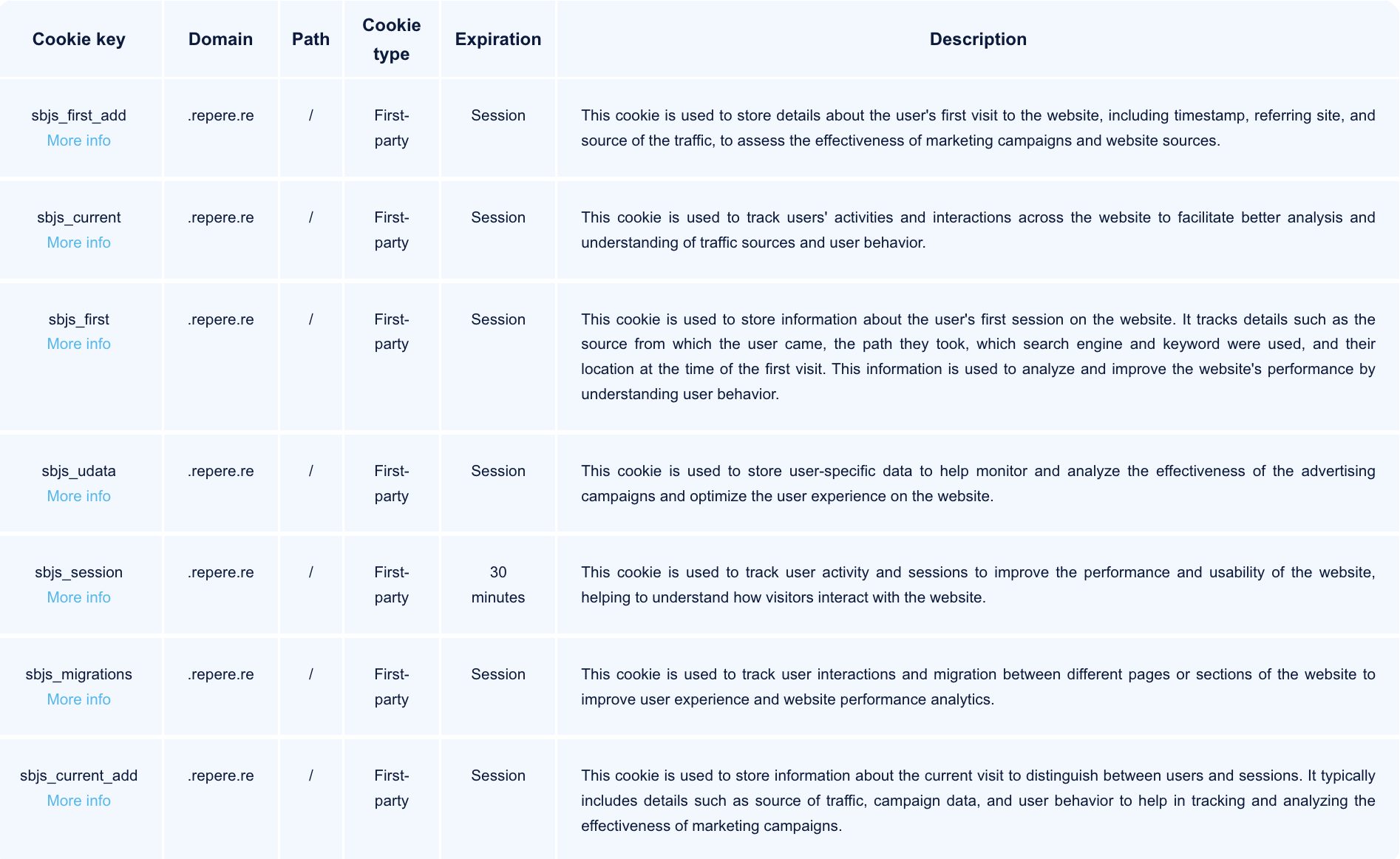 Cette politique complète, les mentions légales qui sont consultables par les utilisateurs à l’adresse suivante : https://repere.re/mentions-legales/.